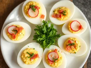 Dla bardziej wykwintnego efektu możesz dodać na wierzch odrobinę kawioru z alg lub klasycznego kawioru, co pięknie prezentuje się na przyjęciach. Jeśli lubisz ostrzejsze smaki, posyp jajka odrobiną świeżo startego chrzanu lub pieprzu cytrynowego. Dzięki tym prostym dodatkom ta szybka przekąska nabierze wyjątkowego charakteru i stanie się ozdobą stołu.